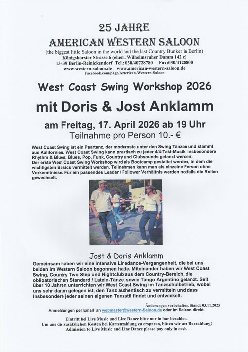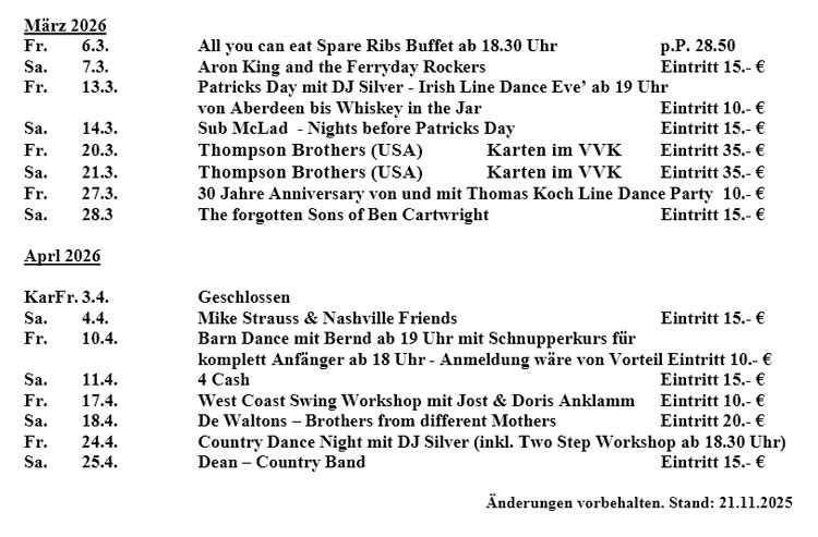 bei Live Music und Line Dance bitte nur in bar